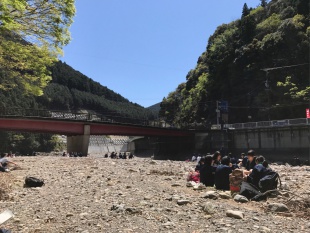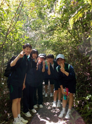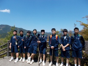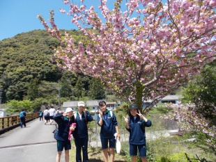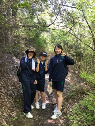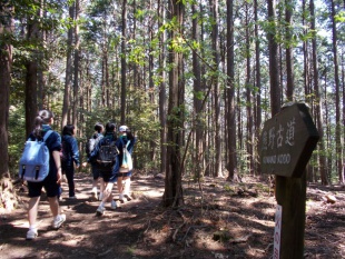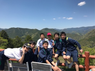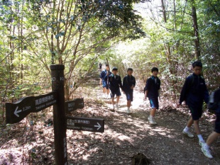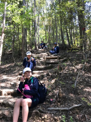 中3は、熊野古道、中辺路に春の登山に行っています。バスの中は、元気いっぱい、友達とおしゃべりしながら、目的地に向かっています。