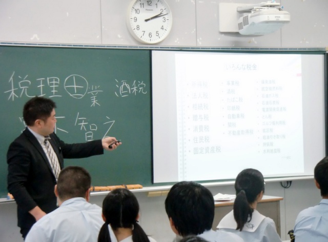 2017年07月18日(火) 中3 < 過去のニュース 中学校3年生 租税教室 7月18日(火)、税理士の宮下智之先生をお招きし、租税教室を行いました。 身近な税金の使い道からその必要性と役割を理解し、税の種類と仕組みを学びました。 三択クイズやグループワークを通して、税に関する知識を深めることができました。 ありがとうございました。