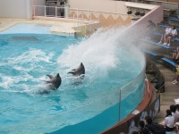 10時過ぎ、無事に須磨海浜水族園に到着しました。生徒たちは、普段は見ることのない珍しい海の生物たちを見ながら、生体の解説文をしっかり読んでいました。ラッコやペンギンを見学中には「可愛いー!」という声があちこちで聞こえました。イルカショーでは大いに盛り上がり、最前列で水に濡れた生徒たちもいましたが、みんな笑顔いっぱいで、とても楽しそうでした。