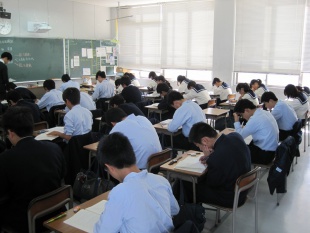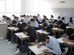 2014年10月25日(土) 中3 < 過去のニュース 中3駿台全国模試 本日10月25日、中等部3年生のスーパー理進コース全員と特進コースの希望者が駿台全国模試を行いました。 英語、数学、国語それぞれ80分のテストで長い時間ですが、生徒たちは集中して取り組んでいます。 全国の中学3年生がライバルです。最後までしっかりとがんばりましょう!