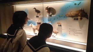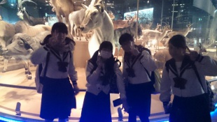 科学館では日本館と地球館で分かれていて、古代と動物の剥製や化石などが置いていて生徒たちも興味を持って見ていました。