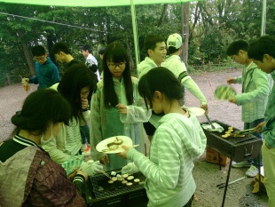 雨の中のバーベキューで大変でしたが、最後まで楽しんでくれました。