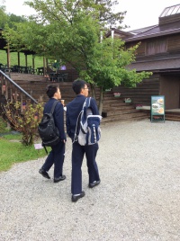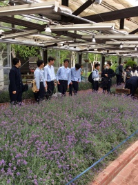 生徒たちはラベンダーの香りをかいだり、有名なソフトクリームを食べたりして