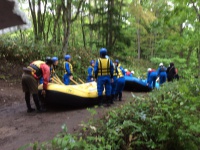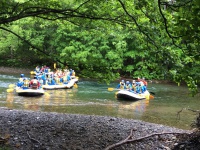 昨日までに降った雨で川が増水して、迫力満点の体験に、皆歓声を上げていました。