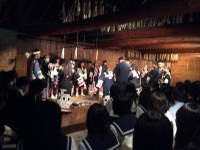 白老ポロトコタンでは、アイヌの伝統的な楽器であるムックリやトンコリの音色に耳を傾け、舞踏には生徒も参加し、まさにアイヌ文化を「体感」しました。