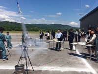 ロケットエンジン見学、昼食後、自作ロケット打ち上げ。
