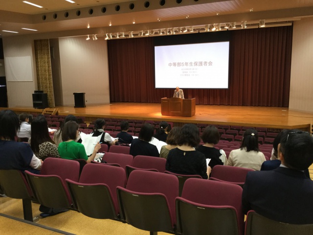 2019年06月01日(土) 中5 < 過去のニュース 中等部5年生 保護者会 本日、中等部5年生 第1回保護者会が開智ホールで開かれました。 学校長の挨拶の後、学年主任より、中5が開智での6年間の要の年になること、昨年度の入試動向、生徒たちの現在の学力状況の報告、来年の受験学年に向けて今年度の過ごし方や目標などをお話しさせていただいた後、進路担当から本年度の進路指導計画についてお話しさせていただきました。また、間近に迫った修学旅行についてもご連絡させていただきました。 保護者の皆様、本日は、お忙しい中、お越し下さいましてありがとうございました。