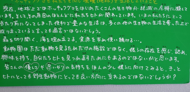 また見るだけではなく、動物園からのメッセージをしっかり受け取り、野性動物と共存できるよう生活の中で改善できるところはしていきましょう!
