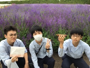 2023年06月07日(水) 中5 < 過去のニュース 中5 修学旅行③ お花がとってもきれいでした。ラベンダーも咲いていましたね。 ラベンダー味のソフトクリームに挑戦する人もたくさんいました。 おいしかったですか。 夕食を食べて、いまから少しの自由時間です。 明日も一日元気に楽しみましょう!!!!!! 雨予報にも関わらず、外に出ている間は雨が降りませんでした。 なんでだろうと思っていると、ホテルに素敵なお友達がいました。 彼のおかげで明日も晴れるでしょう。ホテルの方に感謝しましょうね。