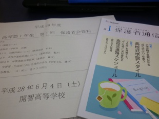 2016年06月04日(土) 高1 < 過去のニュース 高1 保護者会 高等部1年生の保護者会を行いました。 全体会では、成績評価、進路指導、学校での様子(学習面、生活面)を説明させていただきました。 その後、各クラスに分かれて、クラス懇談を行いました。 お忙しい中、ありがとうございました。