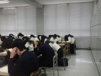 2017年02月01日(水) 高1 < 過去のニュース 高等部1年生 校内実力テスト 本日、校内実力テストが実施されました。 9:00-10:00 国語 10:10-11:10 数学1 11:20-12:20 英語 12:55-13:55 理科 14:05-15:05 数学A 1年間のまとめとして、実力を出し切ってくれたと思います。 3月には今年度最後の定期考査もあります。次は定期考査に向けて復習を進めましょう。