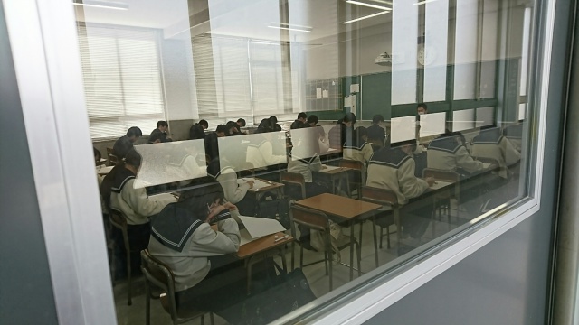 2018年02月02日(金) 高1 < 過去のニュース 高1 校内実力テスト 31日、高校1年生の校内実力テストが行われました。 このテストは、日頃の努力の成果を確認するのはもちろん、次年度以降のコースを決定するための大切なテストとなっています。 国語・数学1・数学A・英語・理科の五教科を1日で行うという長丁場のテストでしたが、みなさんしっかりと取り組んでいました。