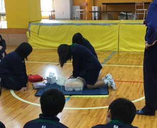 保健の授業の一環で、救命救急の講習をしていただきました。