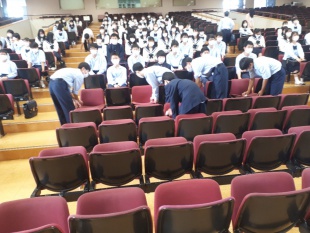 また、入室時には手の消毒を、退出時にはひとりひとりが自分の使った椅子を消毒してから下校しました。