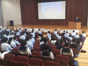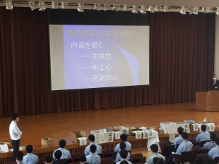 その後、学年主任の早野先生から、開智生としてどうあるべきか、どうあってほしいかというお話がありました。