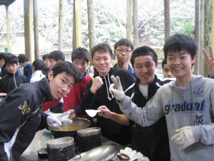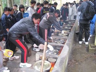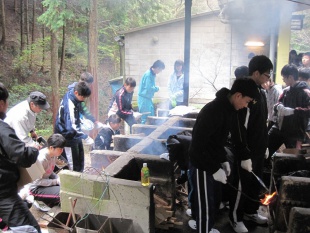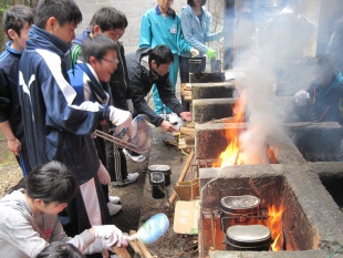その後、全員で飯ごう炊さんを行いました。