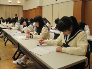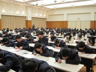 2015年04月11日(土) 高1 < 過去のニュース 高等部1年 宿泊研修 3日目 最終日の4月11日は、総仕上げとしてテストを行いました。 この3日間頑張ってきた成果を出しましょう! 最後に各先生方から総評をいただき、昼食後ユニトピアささやまを出発しました。 入学してすぐの宿泊研修ではじめはみんな緊張していましたが、最終日にはみんなの仲良く話す姿を見ることができました。 勉強面も友人関係もこれからもっと充実したものにしていきましょう!