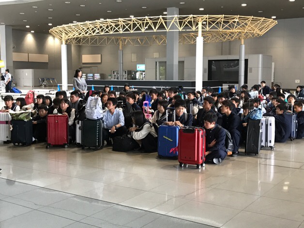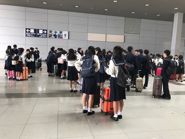 2017年06月11日(日) 高2 < 過去のニュース 高2修学旅行(北海道) 本日11日から14日まで、高2は3泊4日の北海道修学旅行に出発します。 朝早くの集合でしたが、みんないつも以上に元気いっぱいです。 教頭先生からのお言葉をいただき、今からA組は伊丹空港、B〜E組は関西空港からの飛行機に乗ります。 それでは北海道へ向けて、テイクオフ! いってきます!