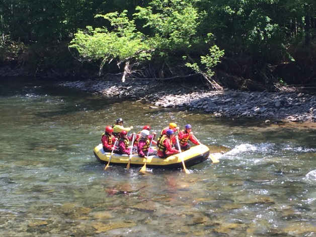 ラフティング班は8時に、フィッシング・乗馬班は9時にそれぞれホテルを出発しました。