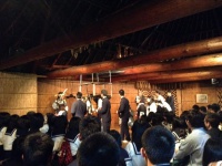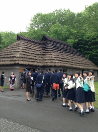 登別を出発し、アイヌ民族博物館へ行きました。アイヌ語やアイヌ文化について楽しいお話を聞いた後、生徒も先生も一緒にアイヌの伝統舞踊を踊ることができました。