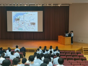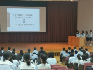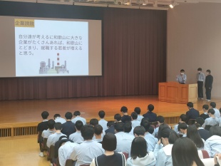 2023年05月24日(水) 高2 < 過去のニュース 高等部2年生 探究発表 高等部2年生では昨年から和歌山県の地域創生について、探究活動を実施してまいりました。 和歌山県が抱える課題をグループで考え、どうしたら良くなるのかを考え、発表をしました。 それぞれのグループが様々な視点からの考察や解決方法を提案し、「答えのない問題」にアプローチをすることができました。 このように新しい学力観の育成しています。