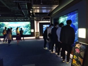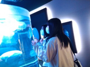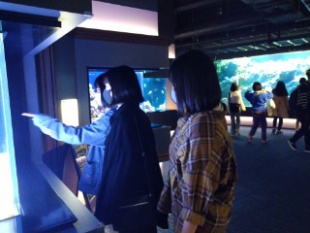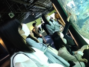 たくさんの海の生物を見ることができました。また、大きい水槽があったり頭上に魚が泳いだりするなど面白い展示方法で、生徒たちも興味津々の様子。「クラゲがかわいい!」「カワウソがかわいい!」と言った声も聞こえてきました。
