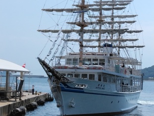 途中で、もう一隻の観潮船、新咸臨丸とすれ違いました。咸臨丸によく似せた黒い船体がかっこいいです。