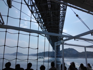 大鳴門橋の下をくぐってぐるりと旋回、福良港に戻ります。楽しく興味深いクルーズでした。