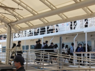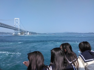 大きな観潮船日本丸で福良港を出発し、大鳴門橋をくぐって福良港に戻る、1時間ほどの行程でした。船の上からの光景もきれいで、みんな写真を撮ったり楽しんでいました。