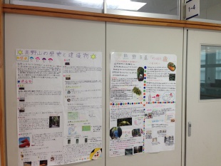 プラセットホールでは昨年度の開智祭で最優秀賞をとった作品が展示され、1年生の教室前には先日の体験学習が展示されていました。