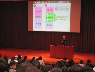 2017年12月09日(土) 入試関連 < 過去のニュース 高校 入試説明会(最終) 12月9日(土)本校にて、最終の入試説明会を行いました。 非常にたくさんの生徒及び保護者の方がご来校してくださいました。 最終の説明会では、教育内容の説明、入試要項の説明、施設見学、個別相談に加えて「入試直前アドバイス」を行っています。 各教科の担当者から平成30年度入試について、注意点や傾向などアドバイスをさせていただきました。 受験生のみなさん、本校の入試まであと少しです。 体調には十分気をつけてもらって、最後までしっかりと準備をして挑みましょう!