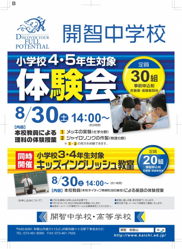 2014年06月28日(土) 入試関連 < 過去のニュース 中学校体験会のお知らせ 7月1日(火)12:00よりHPにて受付を開始いたします。 当日は回線が混み合い、繋がりにくくなる恐れがありますが、ご了承ください。