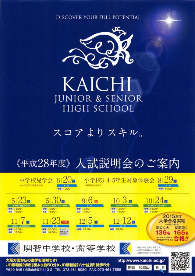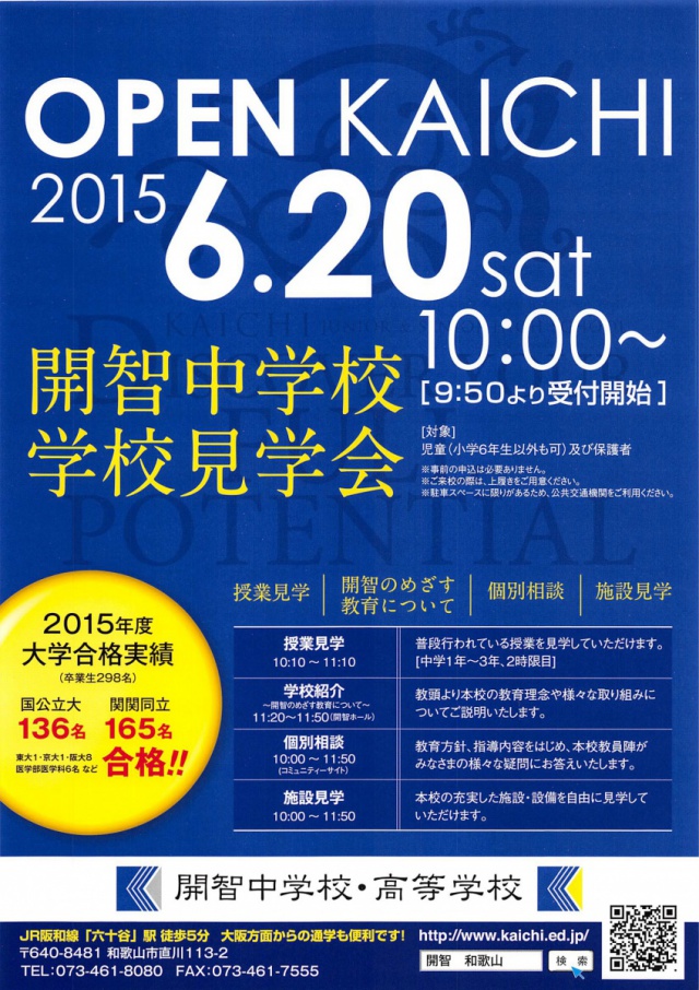 2015年05月22日(金) 入試関連 < 過去のニュース 入試説明会のご案内 平成28年度入試説明会 第1弾 5月23日(土)御坊商工会館にて 中学:13時から 高校:15時から たくさんのご来場お待ちしております。 (↓画像をクリックすると拡大します)