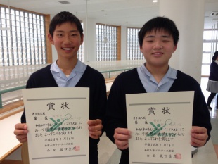 2016年01月26日(火) クラブ < 過去のニュース 中学校ソフトテニスインドア大会 結果 1月16日(土)に和歌山ビッグホエールにおいて 平成27年度和歌山市ソフトテニスインドア大会が開催されました。 本校から参加したペアのうち、男子の松下聡真・明渡僚介ペアが第3位、 女子の矢野真里奈・田村仁来ペアが見事優勝を勝ち取りました。 特に、男子はシード校の強豪ペアに気迫で打ち勝ち、 女子は第1シードの重圧をはねのけての優勝は立派でした。 これをはげみにこれからも頑張りますので、 応援よろしくお願いします。