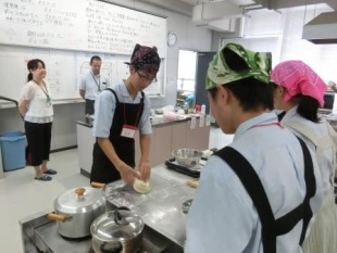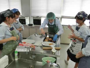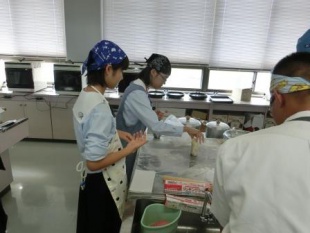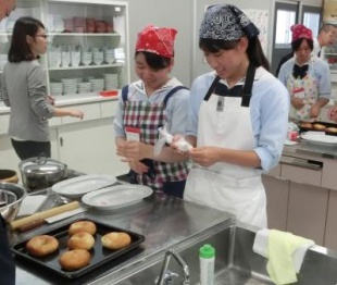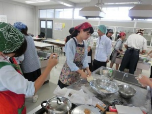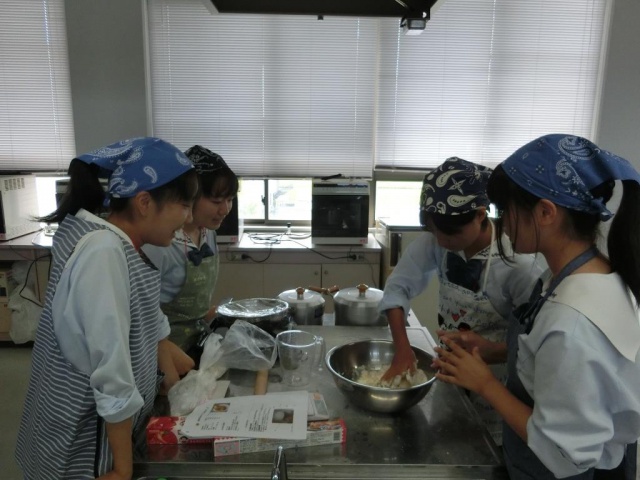午後は,家庭科室で『一般的なコムギ』と『ゆめちから』を使ってのパン(ベーグル)づくり体験です。