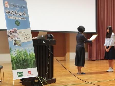 午前中,『ゆめちから』を開発された東京農業大学の西尾先生からコムギについてご講演をいただきました。その後,3校がリバネスとPasco(敷島製パン)から課題研究校として任命されました。
