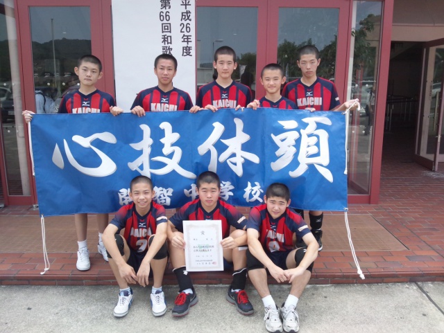 2014年07月29日(火) クラブ < 過去のニュース 中学バレーボール部 大会結果 7月28日、29日に海南市総合体育館および海南高校で行われた第66回和歌山県中学校総合体育大会バレーボール競技の部で堂々の第3位になりました。 練習時間が少ない中で日々自分に厳しく練習してきた成果が出ました。 今後の活躍に期待です。