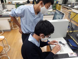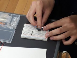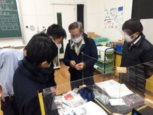 2020年12月25日(金) クラブ < 過去のニュース 物理部「きのくにICT(第6回)」報告 物理部活動報告 「きのくにICT]の取り組み 令和2年度和歌山県「きのくにICT教育指導者派遣事業」開智物理部第6回講習 場所:サイエンスラボ 日時:令和2年12月17日(木)放課後 内容:WiFiモジュール[ESP-WROOM-02]とPCの接続回路の配線 回路配線中 ハンダ付け 回路配線中 電圧変換回路 指導受けてます