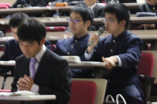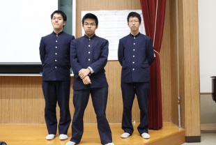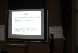 2014年11月19日(水) クラブ < 過去のニュース 【科学部】H26県高等学校総合文化祭自然科学部門(11/9) 11月9日(日)に「和歌山県高等学校総合文化祭自然科学部門」が開催されました。 科学部は、研究タイトル「メンコが反転する原理についてII」で、研究成果を発表してきました。 発表者(山星遼馬、前野里公、野口雄大) 発表の様子 質問している様子 科学部の生徒達は、この研究のために、放課後の時間を使って何度も実験を繰り返し、データ収集を行いました。科学的なものの見方、探求方法もずいぶんと養われてきたようです。