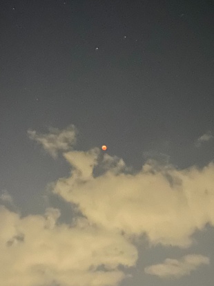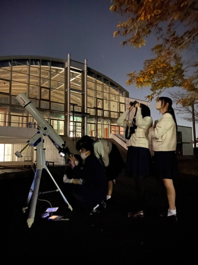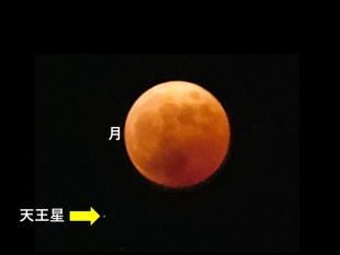 2022年11月10日(木) クラブ < 過去のニュース 【天文部・写真部】皆既月食と天王星食 2022/11/8夕刻から夜にかけて皆既月食および天王星食を観察しました。 天候にも恵まれ,充実した観測ができました。 木星の横縞や多数の衛星,リングがある惑星である土星も観測しました。 生徒たちにとってとても思い出に残る貴重な体験になったと思います。 上の写真は天体望遠鏡の画像です。 一方,下の写真はデジカメで撮った写真です。