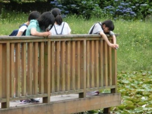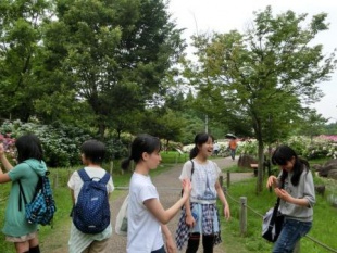 2015年06月14日(日) クラブ < 過去のニュース 園芸研究会 野外実習(とんぼ池公園) 今日は、園芸研究会は岸和田のとんぼ池公園に野外実習に行きました。 約10000株のアジサイの多くが見ごろで、青・紫・ピンクのグラディエーションがとてもきれいでした。 他にも、スイレン、バラなど様々な色や形の花が私たちの目を楽しませてくれました。 たくさん歩きましたが、美しくステキな自然に触れて、 少しでも心がリフレッシュできたならよかったですね。