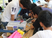 2015年08月06日(木) クラブ < 過去のニュース 缶サット甲子園2015 和歌山地方大会(科学部) ■「缶サット甲子園2015 和歌山地方大会」 科学部は、7月12日(日)に開催された「缶サット甲子園和歌山地方大会」に参加してきました。 午前:打ち上げ実験、午後:事後プレゼン発表の日程で行われました。 打上会場:コスモパーク加太、事後プレゼン審査会場:和歌山市立西脇中学校 機体調整中[1] 機体調整中[2] チェックを受けています トラブル発生 なんとかしようぜ カウントダウン 発射 ロケット上昇中 缶サットリリース 缶サット落下中 データ確認中 プレゼン準備中 ミッションの結果をプレゼン審査
