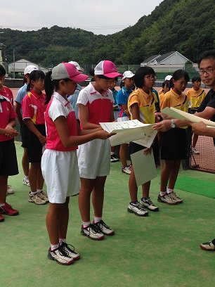 2015年09月05日(土) クラブ < 過去のニュース 和歌山市中学校ソフトテニス秋季選手権大会(個人戦) 先月末、悪天候のために延期されてました 和歌山市ソフトテニス秋季大会が 9/5(土)山東テニスコートで開かれ、 本校2年矢野・田村ペアがベスト4に入賞し、 中体連市内秋季大会のシード権を獲得しました! 他の部員も他校の強豪相手に善戦し、 次の大会へつながるいい経験となりました。 来月の中体連の大会にむけてより一層 頑張りますので応援よろしくお願いします。