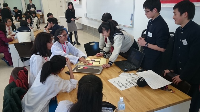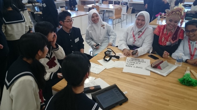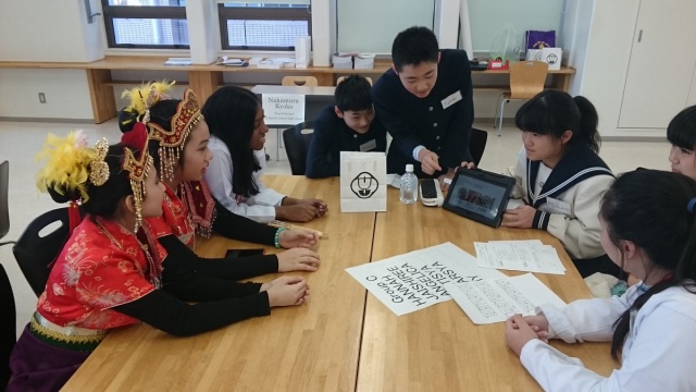 2016年02月25日(木) 国際交流 < 過去のニュース マレーシア学生と交流その2 3-1英語授業参加 3-1の生徒たちが、自分で調べてきた日本の文化や伝統について、タブレットやパソコンを用いて、発表していきました。マレーシアの生徒も真剣に彼らの発表を聞いていました。また発表した内容に関する質疑なども行われ、素晴らしい交流となりました。