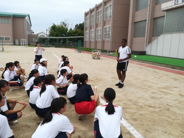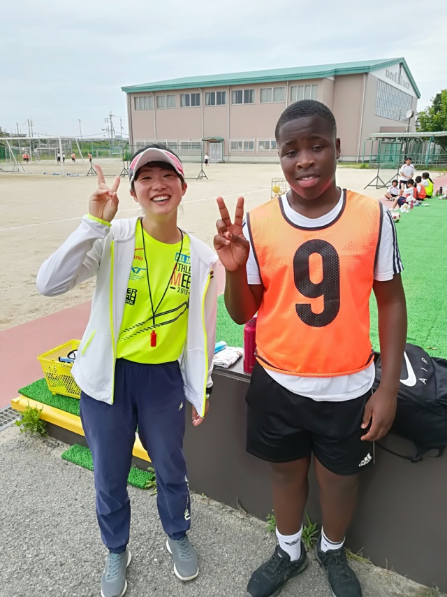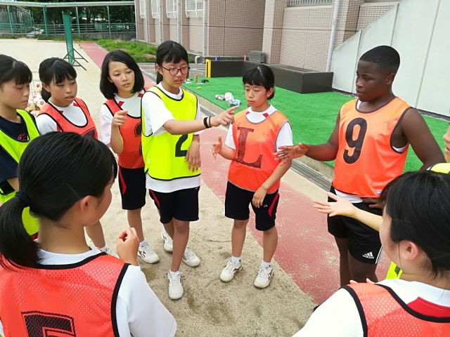 画像は授業参加した体育の様子。さすがFootballの国、サッカーがとても上手でした!