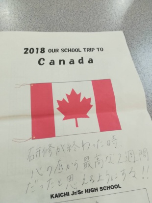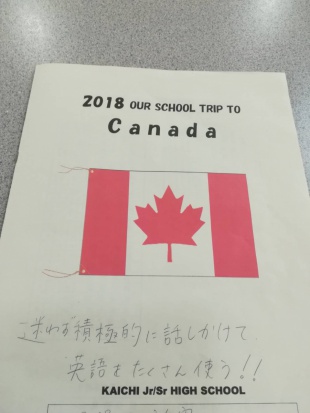そう、毎日、カナダ語学研修用の冊子に英語で短い日記をつけているんです。冊子には、他にも研修中に使える英語表現を書き留めるページもあります。また、表紙には、それぞれ目標を書いて、達成できるよう日々頑張っています。