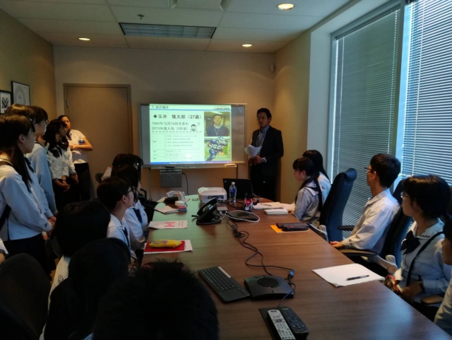 さらに、入社5年目という玉井さんが、企業紹介および海外で働くとは?についてプレゼンテーションをして下さいました。アメリカの小学校を卒業され、大阪で中・高を過ごされた玉井さんは、大阪弁も交えながら、海外で働くのに必要なのは、語学力でもなく、コミュニケーション力でもなく、異文化理解力でもなく、「1歩踏み出す力」だ、と熱く語ってくれました。若くして海外で活躍する先輩の話を直に聞いて、みんなも大いに刺激を受け、その後の質疑応答では、さまざまな質問が飛び交いました。どれも、「みんな良い質問をするね〜!」と玉井さんを唸らせるものばかりで、ますます熱く語ってくれる玉井さんでした。