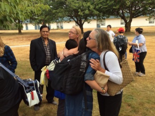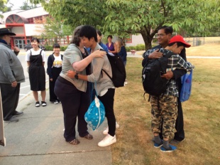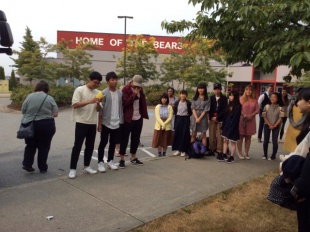 ついに帰国の日がやってきました。ホストファミリーとの別れを惜しむ生徒たち。最後に、代表生徒たちがお別れの挨拶をしてくれました。空港でチェックインとセキュリティーチェックを済ませ、これからカナダ時間の14時50分(日本時間の午前6時50分)のフライトを待ちます。