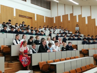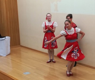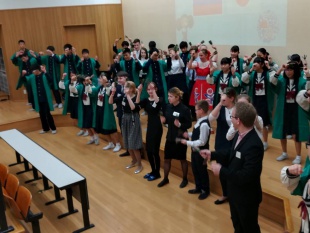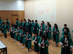 プラセットホールでの歓迎セレモニーでは、校長先生の挨拶に始まり、それぞれの代表生徒挨拶、ロシア伝統ダンス披露、開智生によるよさこい披露があり、最後にはロシアの生徒も一緒によさこいを踊りました。