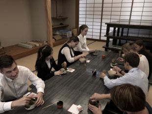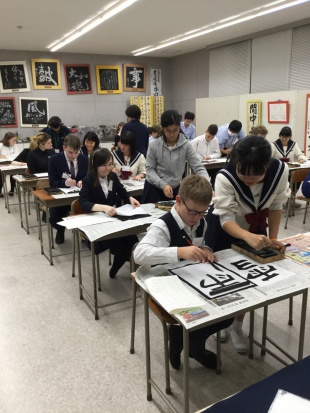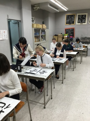 午後からは、よさこいをマスターすべく、さらに練習して踊ったり、英語や数学の授業に参加したりした後、最後には日本文化体験として、書道と茶道を体験してもらいました。